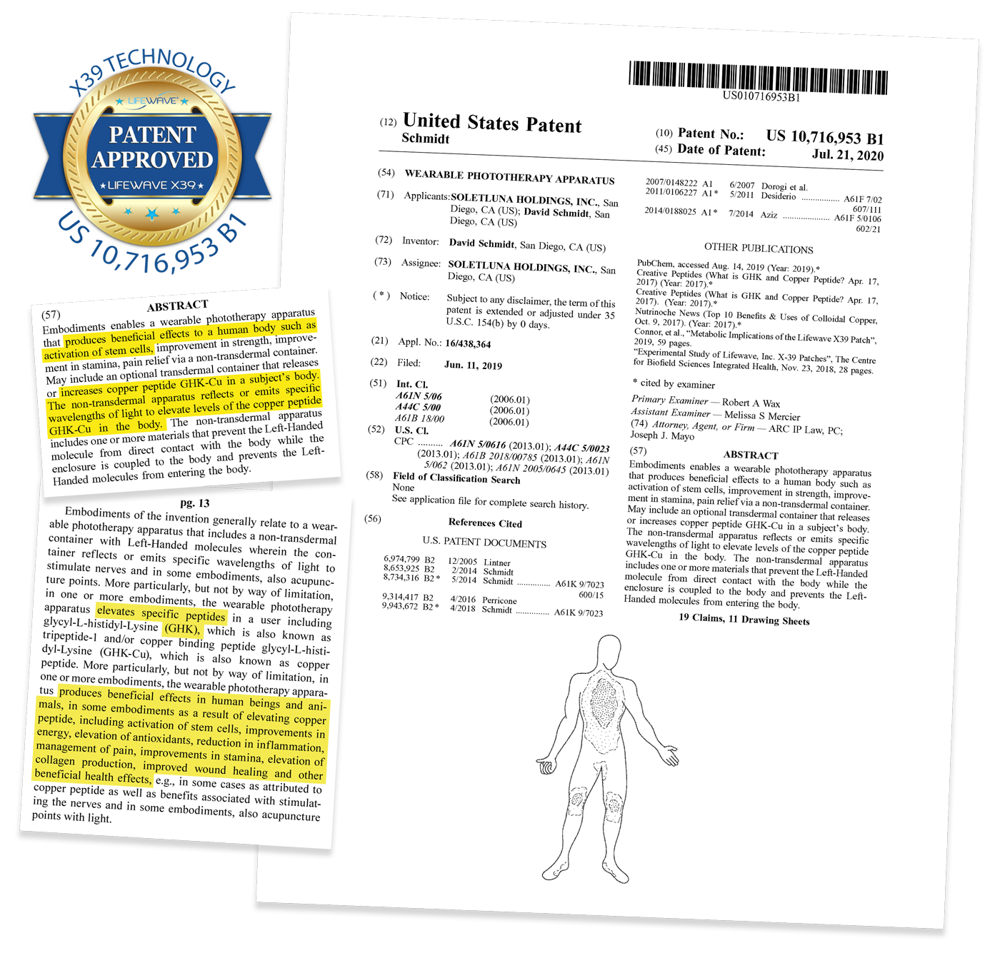 The organic crystals in the X39 patch change the wavelength of the light in a process called photobiomodulation. The new ‘wavelength of light’ then signals your body to increase production of GHK-CU, a copper peptide that has been proven to increase Stem Cell Activity, and reset your stem cells to a younger, healthier state.